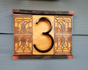 One of the greatest joys of my studio is collaborating with clients to bring their vision into form. For this project, a fellow woodworker crafted a Unit Marker body and wanted to infuse it with the character of Frank Lloyd Wright’s design language. He selected my votive pattern, inspired by the Lake Geneva Hotel, as the finishing touch. The result is a piece that not only highlights his craftsmanship but also carries the architectural spirit that inspires my work. Together, our efforts created a unit sign that is both personal and timeless — a true blend of artistry.